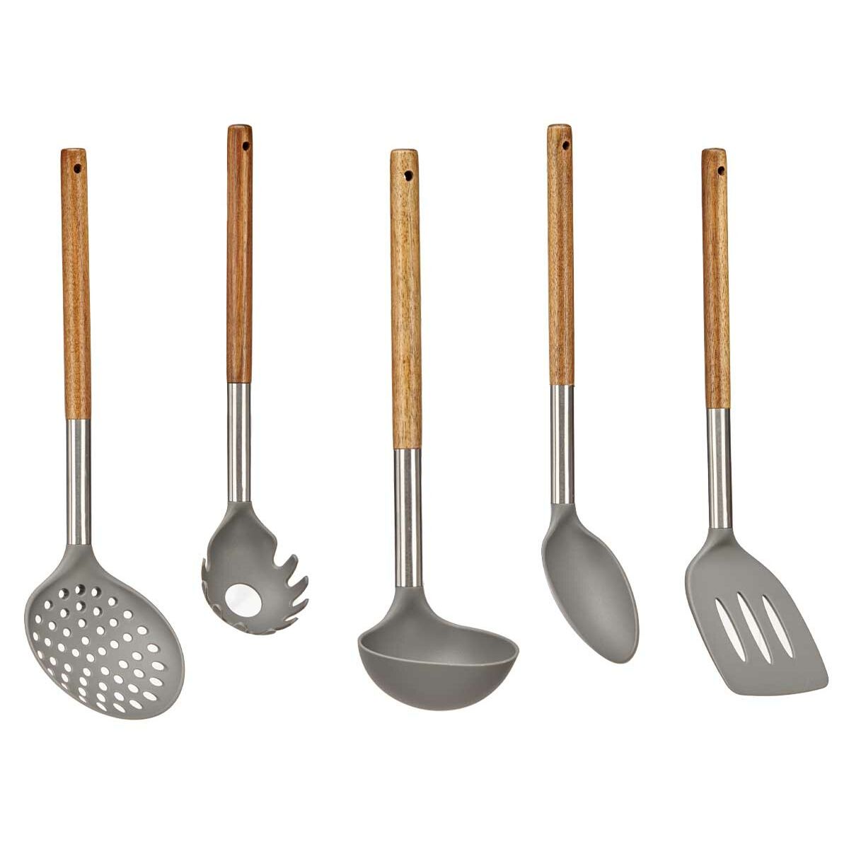 Set of Kitchen Utensils Kinvara KT166095-S5 5 Grey Stainless steel Acacia (6 Units)