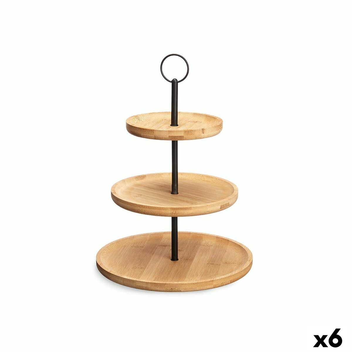 Portafrutta Kinvara KT225015-2 Nero Naturale Metallo Bambù 25 x 37 x 25 cm (6 Unità)