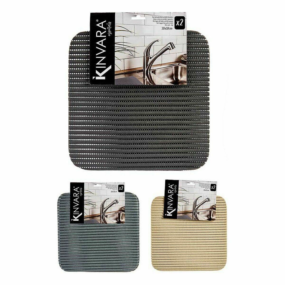 Non-slip Mat Kinvara SJ-A106 White Plastic 32 x 32 cm Set 2 Pieces (24 Units)